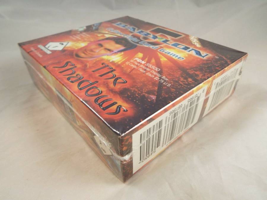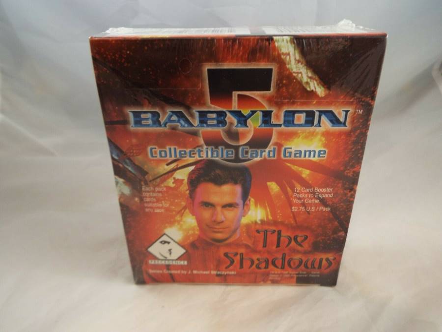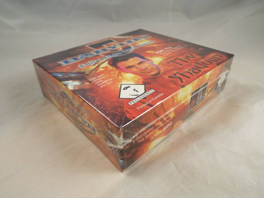 Sealed box of 18 booster packs from the Shadows expansion of the Babylon 5 ccg produced by Presedence.