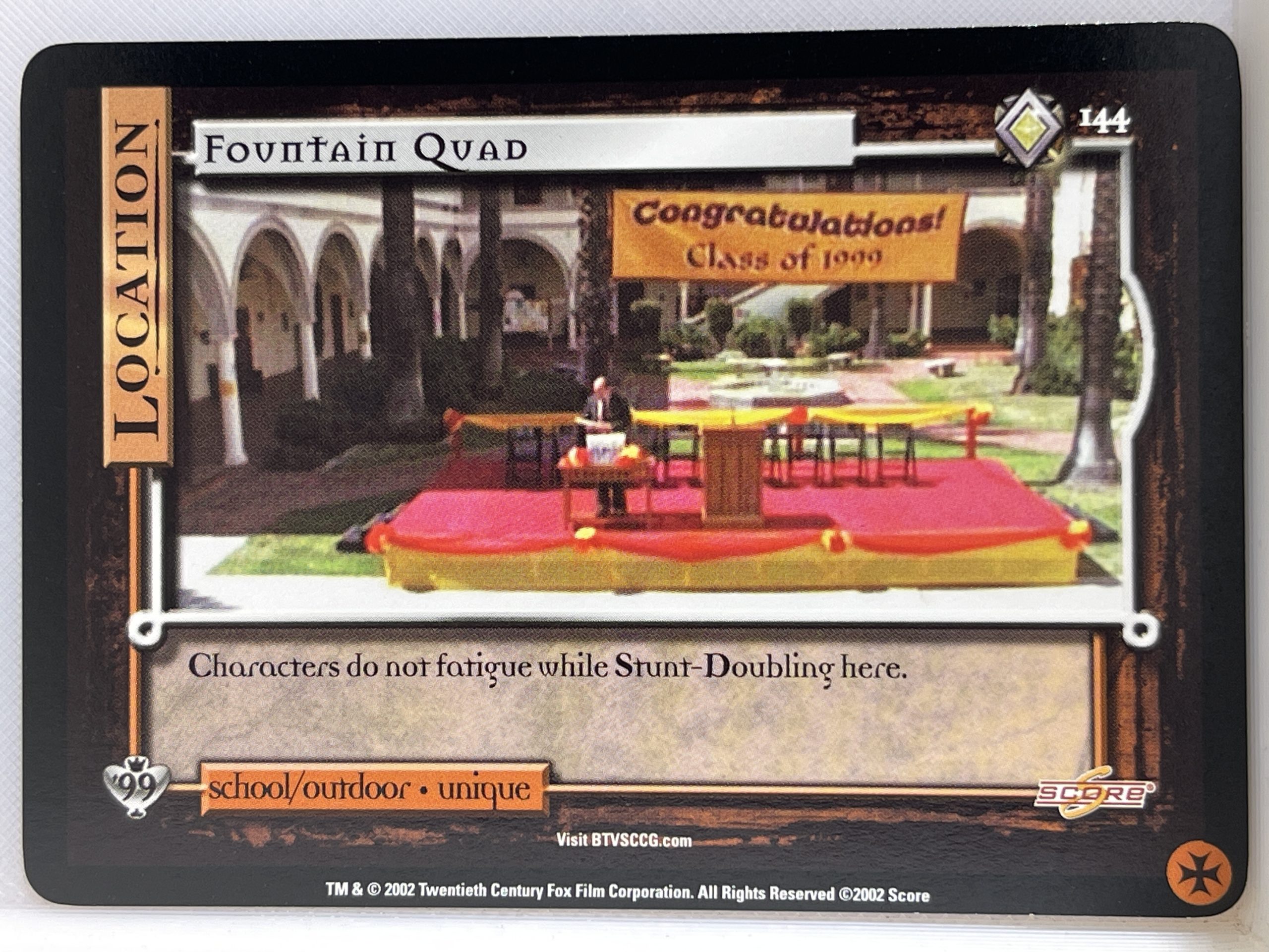 Rare card 144 Fountain Quad from the Buffy the Vampire Slayer Class of 99 collectable card game set produced by Score.
