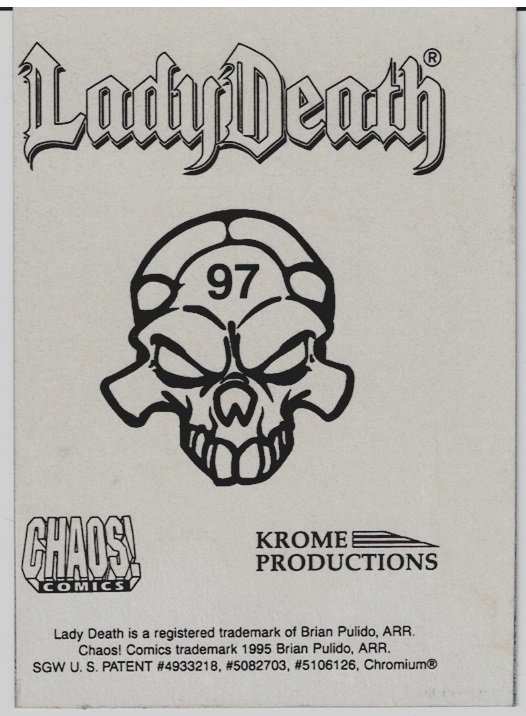 Parallel Chromium sticker card 97 from the Lady Death series 2 card set produced by Krome productions.