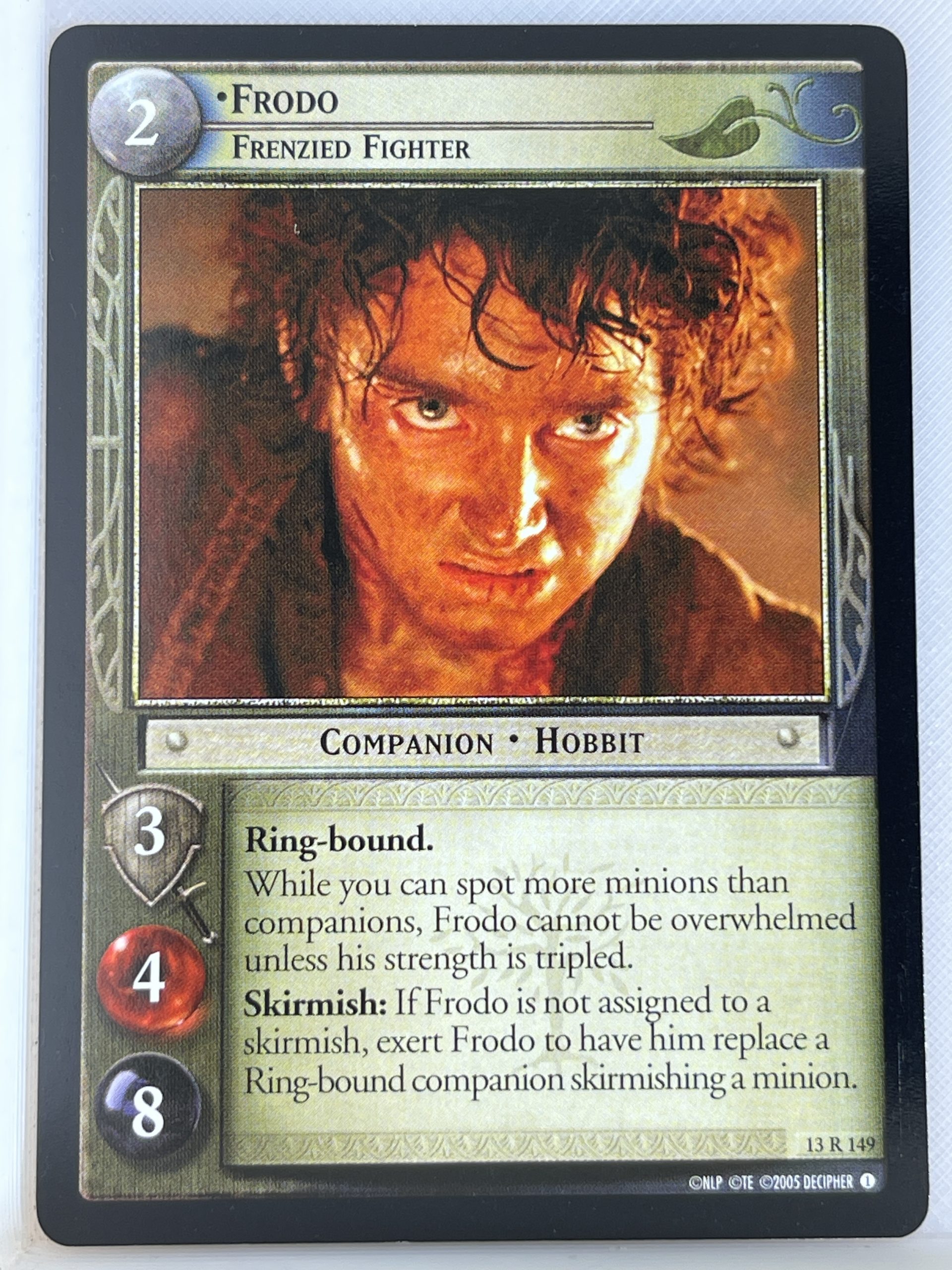 Rare card 13R149 Frodo, Frenzied Fighter from the Bloodlines expansion of the Lord of the Rings Trading card game produced by Decipher.