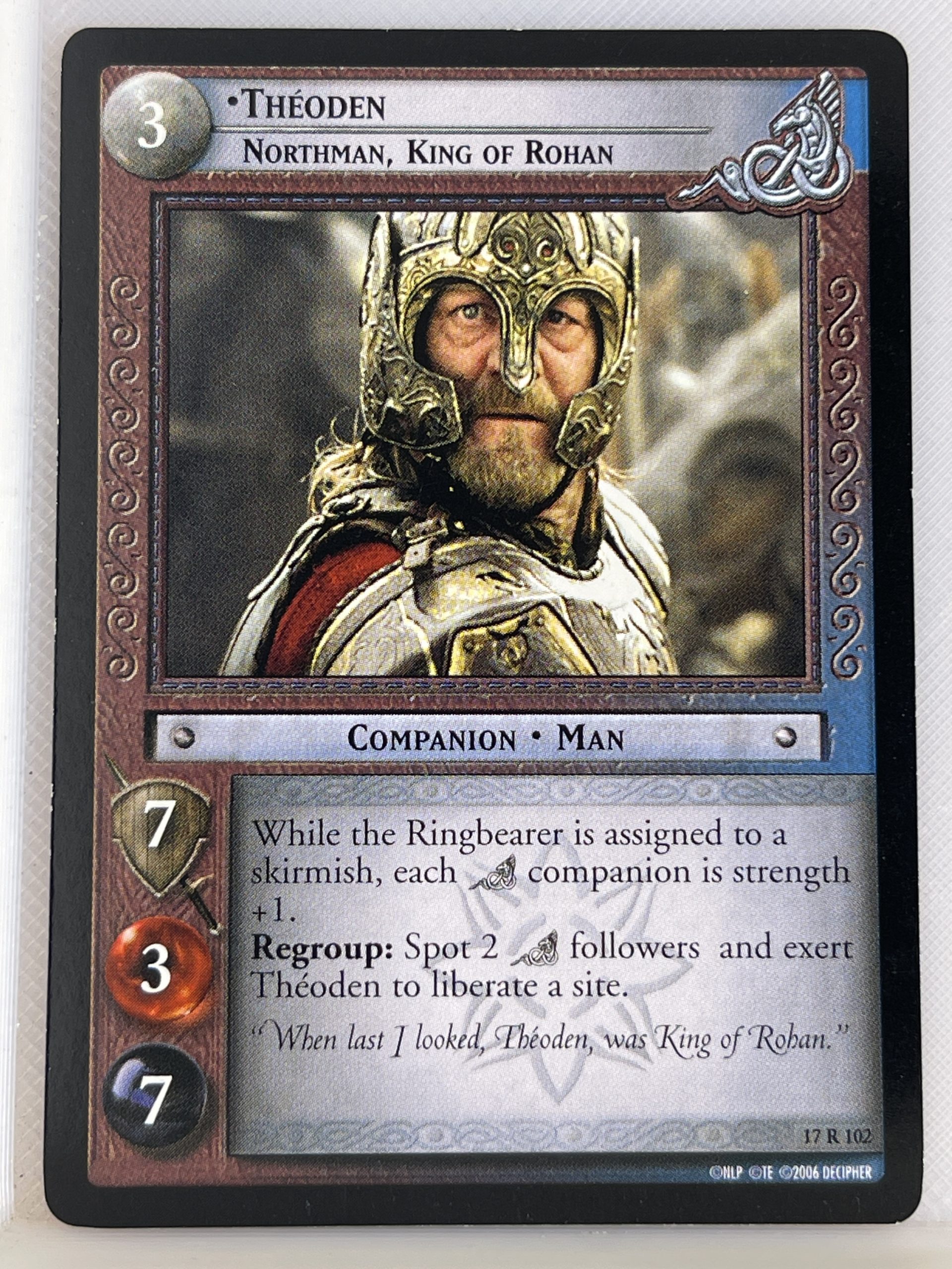 LORD OF THE RINGS TCG RISE OF SARUMAN RARE CARD 17R102 THEODEN lp