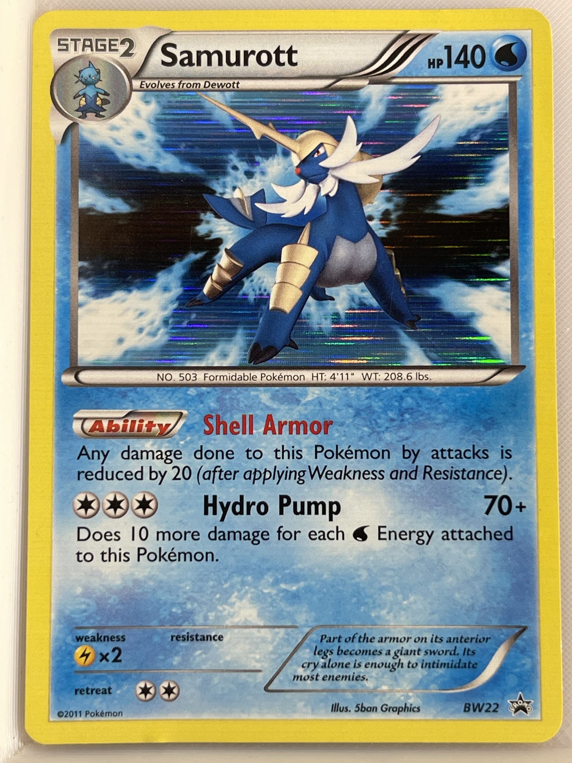Rare Pokemon Holofoil promotional card Samurott bw22.