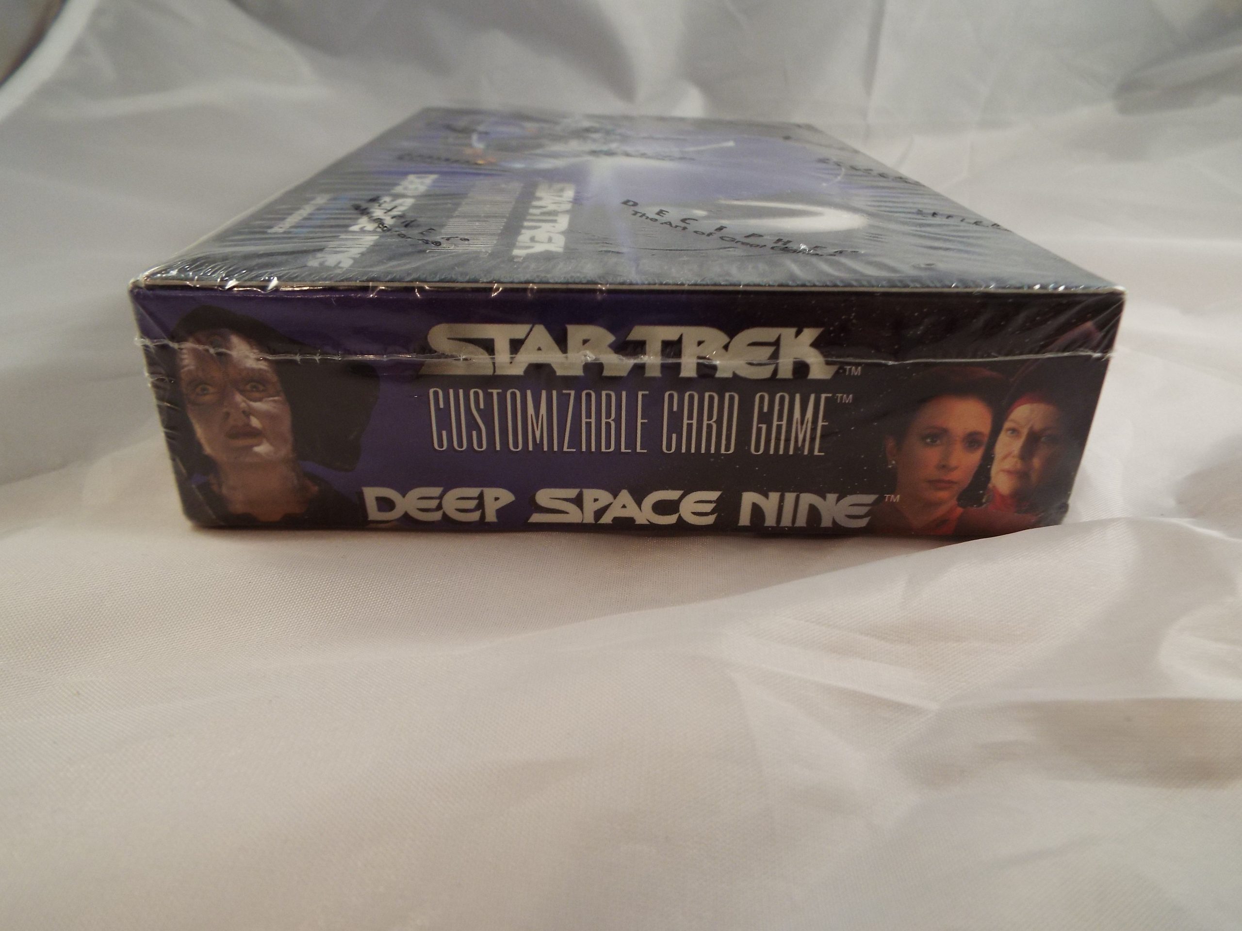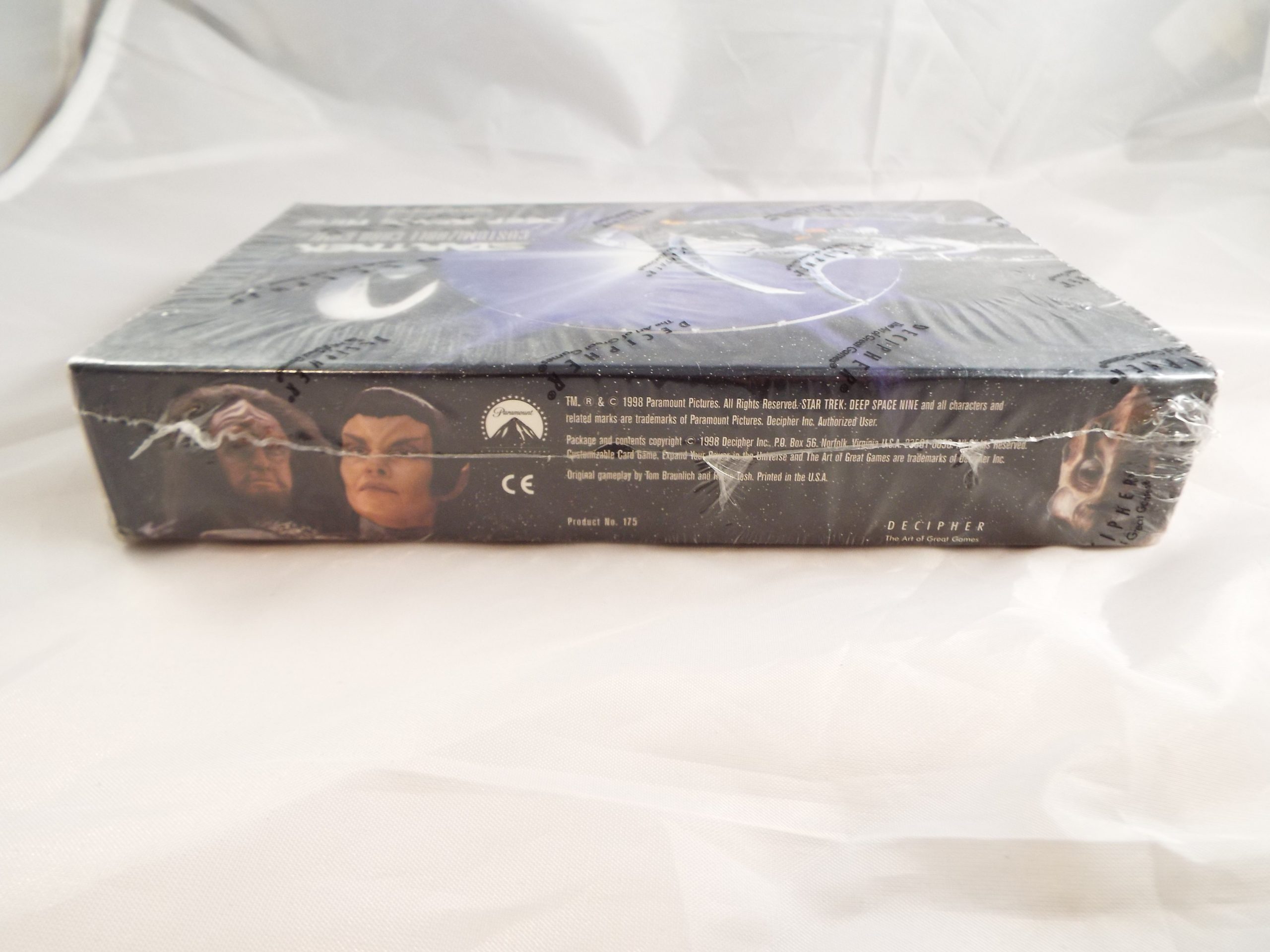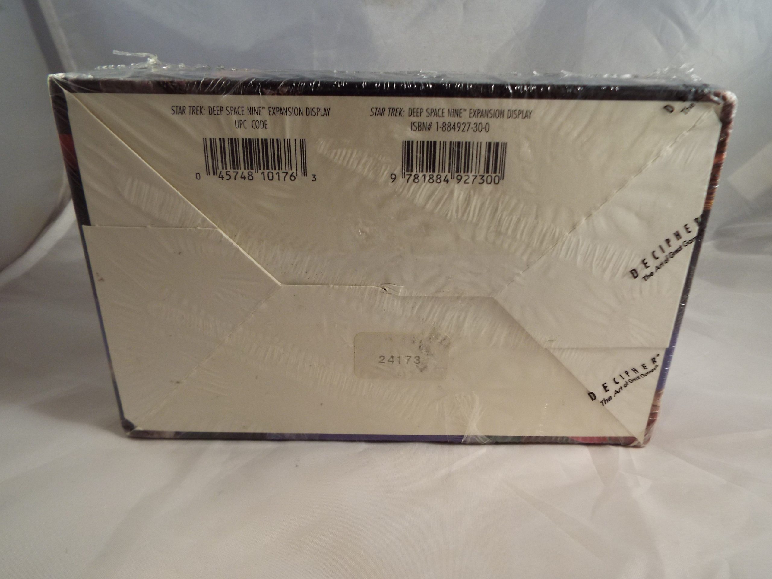 Factory sealed booster box containing 30 packs of 9 cards each from the Star Trek Deep Space Nine expansion of the Star Trek ccg set produced by Decipher.
