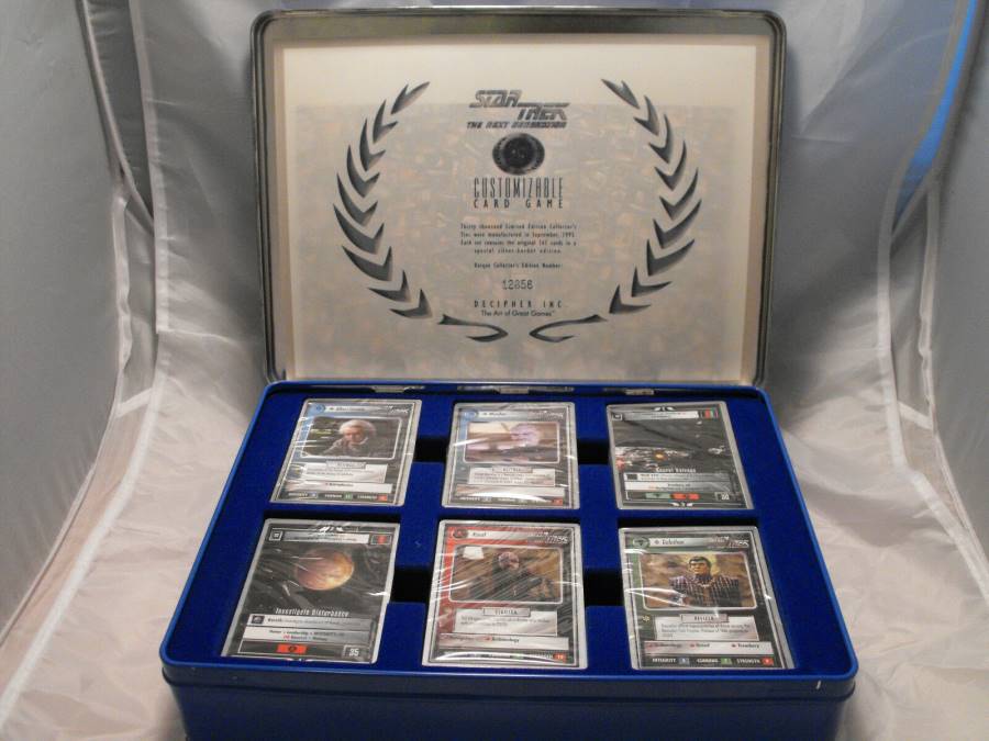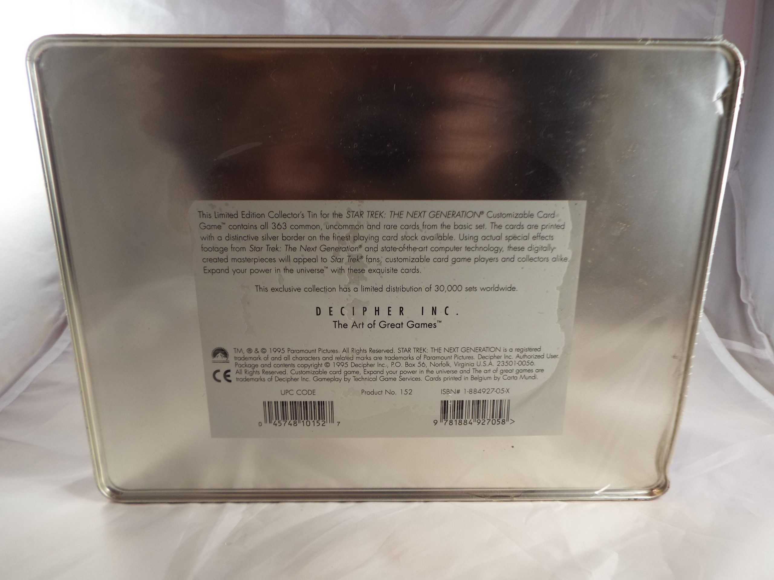 Limited edition collectors tin from the Star Trek ccg card set produced by Decipher. Numbered with certificate, contains a complete silver border set of Premiere.