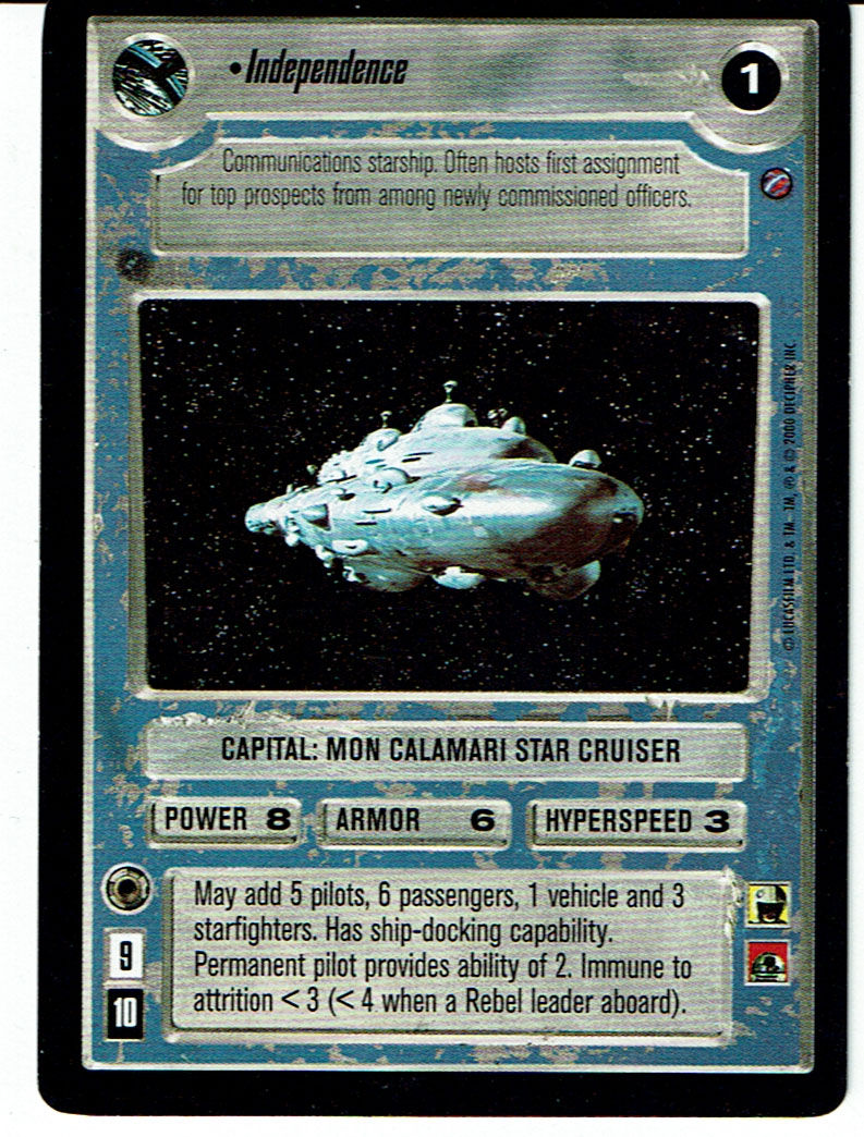 Light side Rare card Independence from the Star Wars Death Star II ccg card set produced by Decipher.