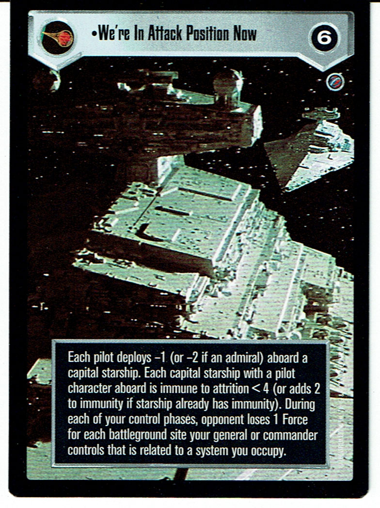 Dark side Rare card We’re In Attack Position Now from the Star Wars Death Star II ccg card set produced by Decipher.