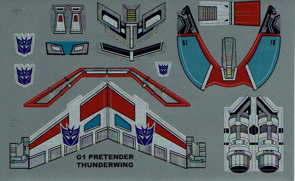 Transformers Generation 1 Thunderwing complete sheet of reproduction labels